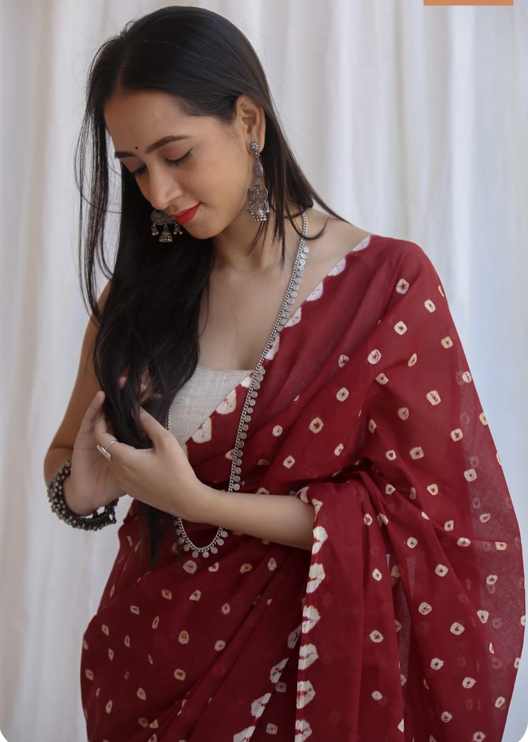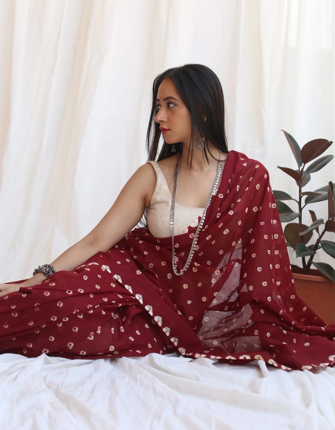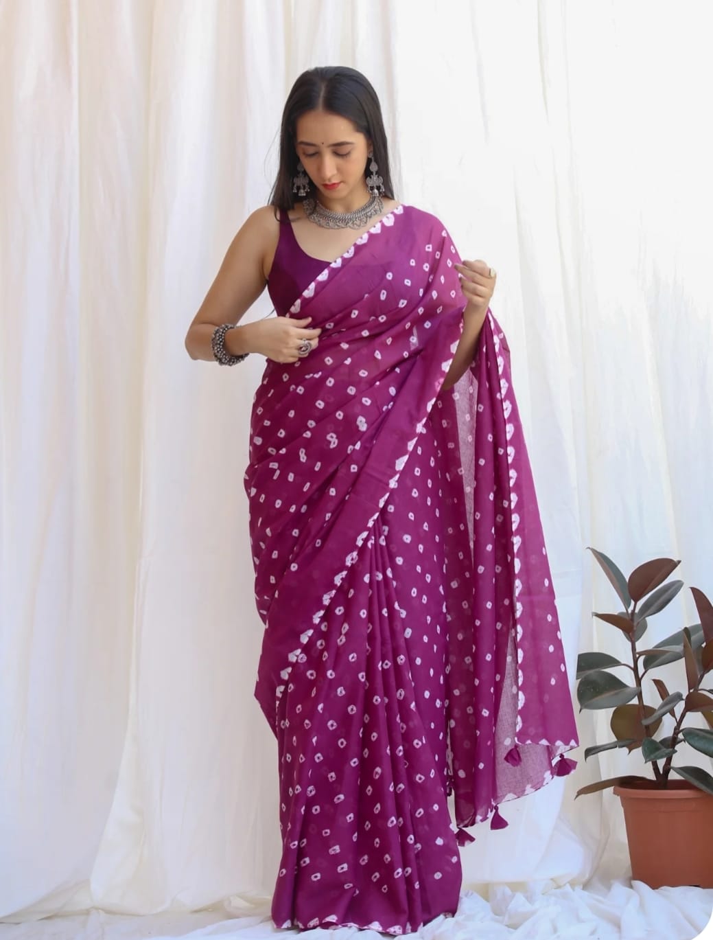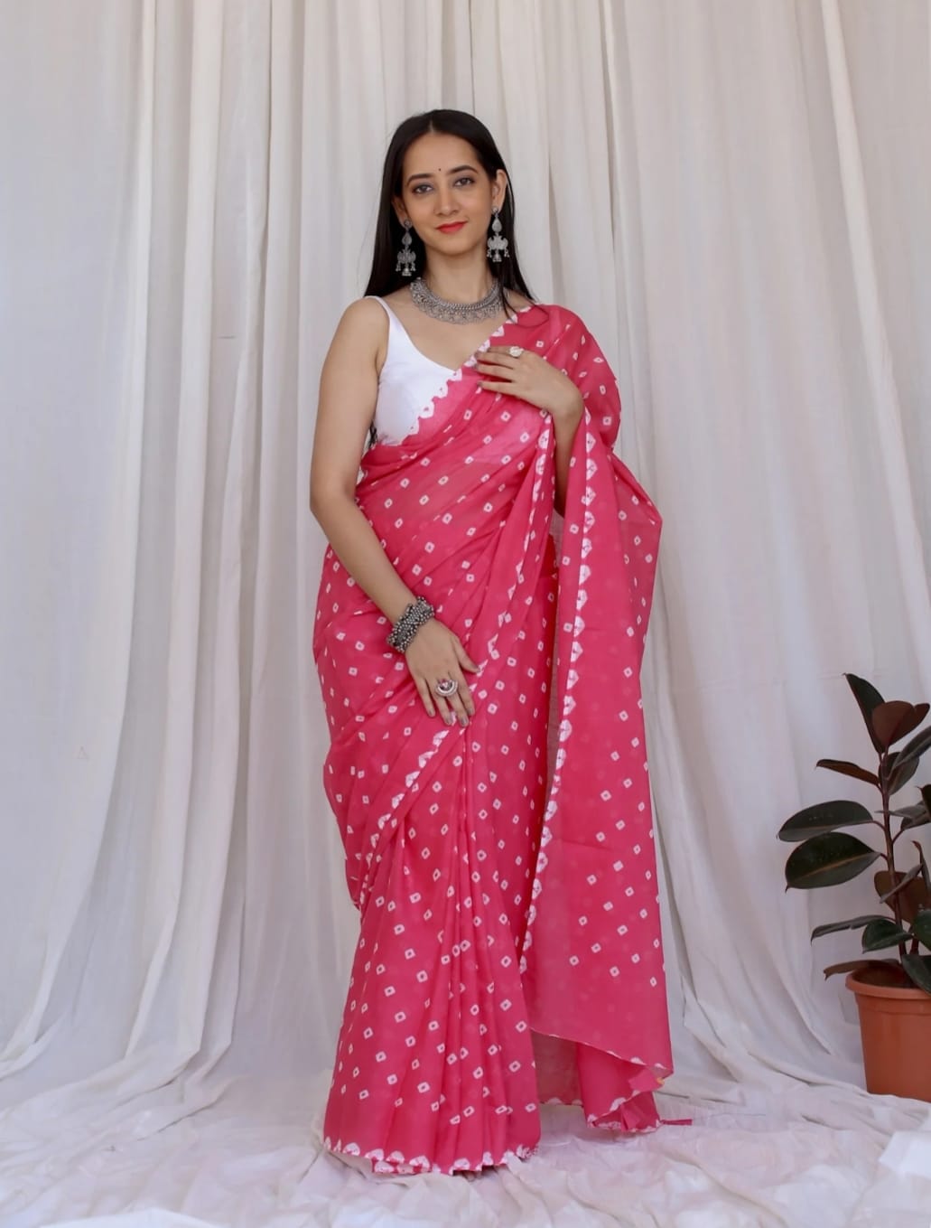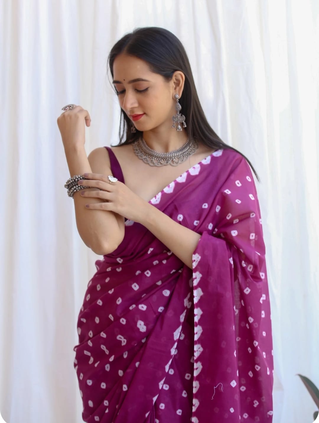 Featuring authentic handblock Bandhani prints, this saree reflects timeless Indian craftsmanship. The airy fabric drapes beautifully, making it ideal for daily wear, office wear, casual outings, and small festive occasions.